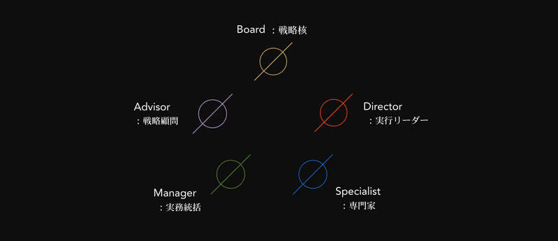 CATALISTの組織は、五層からなる立体構造で設計されています。それはピラミッド型の階層ではなく、役割ごとの相互作用によって循環する構造です。